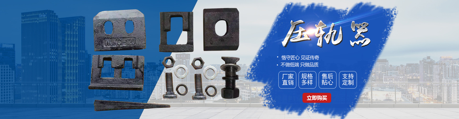 主要產(chǎn)品:鐵路配件、行車配件、工礦配件、魚(yú)尾板、道釘、壓軌器、軌道壓板、軌距拉桿、護(hù)軌扣板、T型螺栓、魚(yú)尾螺栓、彈條、軌距擋板